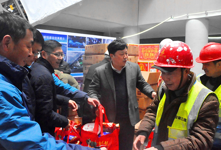 2月2日上午,在新春佳節(jié)即將來臨之際,公司總經(jīng)理、黨委副書記何洪春、紀(jì)委書記、工會主席李家保、副總經(jīng)理李建成組成慰問工作組,深入安徽創(chuàng)新館項目部一線,給依然奮戰(zhàn)在項目一線的廣大員工和工人送去了新春祝福以及春節(jié)慰問品。