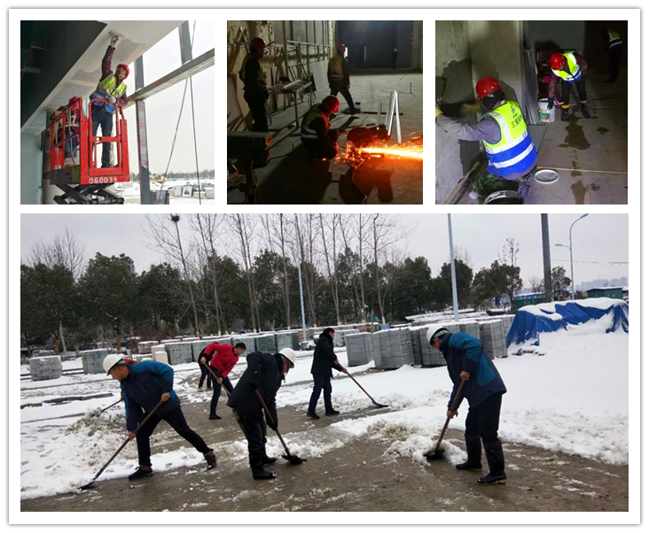 經(jīng)過一夜的大雪,2月8日大年初四的安徽創(chuàng)新館項目披上了一層白衣,當(dāng)全國人民還沉浸在歡度春節(jié)的喜慶氛圍里,百余名施工人員已經(jīng)在項目施工現(xiàn)場緊張而有序的忙碌。為了全面貫徹落實集團公司一屆六次職代會精神,完成2019年集團公司的既定目標(biāo),保障工程進度和更好地推進項目建設(shè)工作,和安徽創(chuàng)新館一樣,安徽三建的許多項目部和工作崗位已經(jīng)陸續(xù)提前復(fù)工,各項工作也在有序開展中。截止到2月16日, 四公司、八公司、九公司、安裝公司、基礎(chǔ)公司以及西北公司、海南公司等數(shù)十個項目已經(jīng)提前復(fù)工,投入到緊張的建設(shè)中。大家力爭為2019年各項工作開好頭,為實現(xiàn)完成全年目標(biāo)奠定基礎(chǔ)。