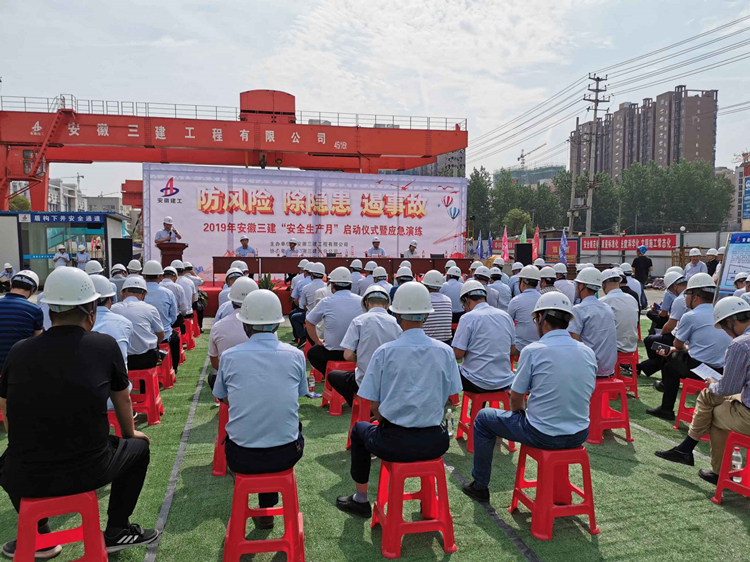 5月31日上午9時(shí),2019年公司“安全生產(chǎn)月”啟動(dòng)儀式暨安全宣誓、應(yīng)急救援演練活動(dòng)在合肥市軌道交通4號(hào)線4標(biāo)段項(xiàng)目大強(qiáng)路站舉行。公司黨委副書記、總經(jīng)理何洪春、副總經(jīng)理李建成出席活動(dòng),所屬各單位分管領(lǐng)導(dǎo)、安全科長(zhǎng)、合肥地區(qū)項(xiàng)目經(jīng)理及項(xiàng)目安全負(fù)責(zé)人等150余人現(xiàn)場(chǎng)參加活動(dòng),外地分公司、項(xiàng)目部千余人在線觀看活動(dòng)。公司紀(jì)委書記、工會(huì)主席李家保主持啟動(dòng)儀式。