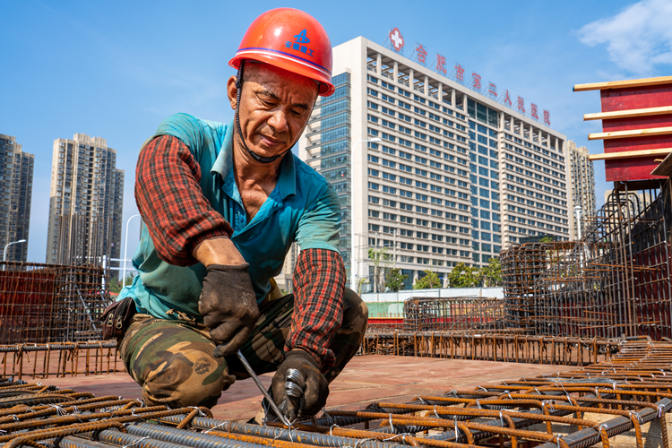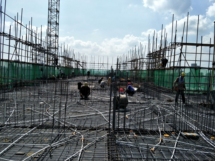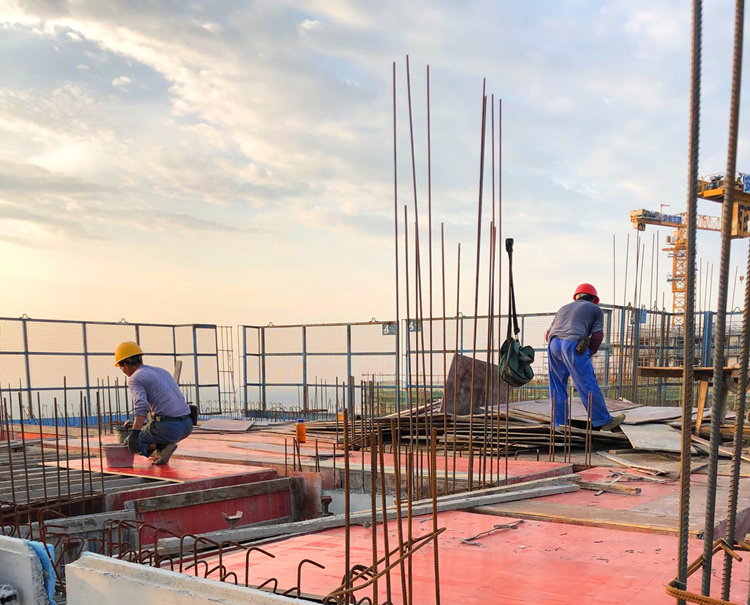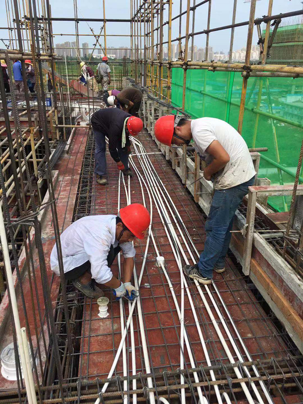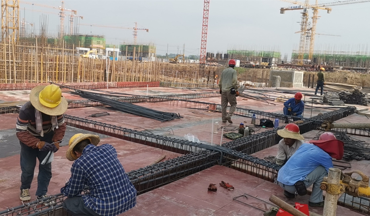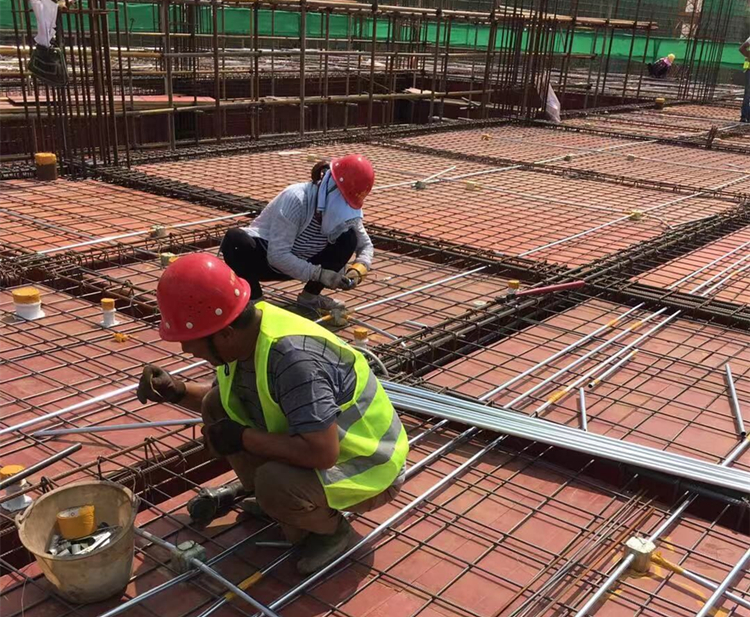 為保證施工工期,二公司、七公司共同承建的濱湖沁園項目鋼筋班組工人冒著高溫天氣綁扎鋼筋,項目管理人員跟班作業(yè)同時進(jìn)行檢查。為防止管理人員及工人出現(xiàn)高溫中暑現(xiàn)象,項目制定了嚴(yán)格的作息時間,上午10:00-下午3:00時間段禁止室外作業(yè),以保證施工人員的身體健康。