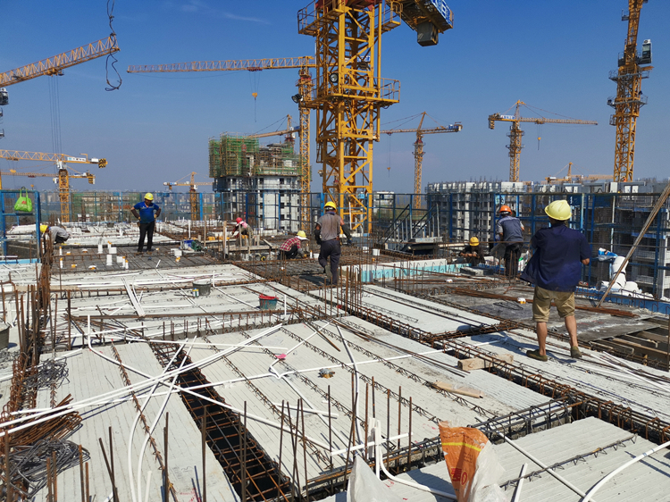 7月25日,在十二公司肥西優(yōu)步學(xué)府項目上結(jié)構(gòu)施工現(xiàn)場,為保證計劃工期,項目工人們戰(zhàn)高溫、斗酷暑,正在進(jìn)行頂板上綁扎鋼筋及水電預(yù)埋,揮汗如雨奮戰(zhàn)在第一線