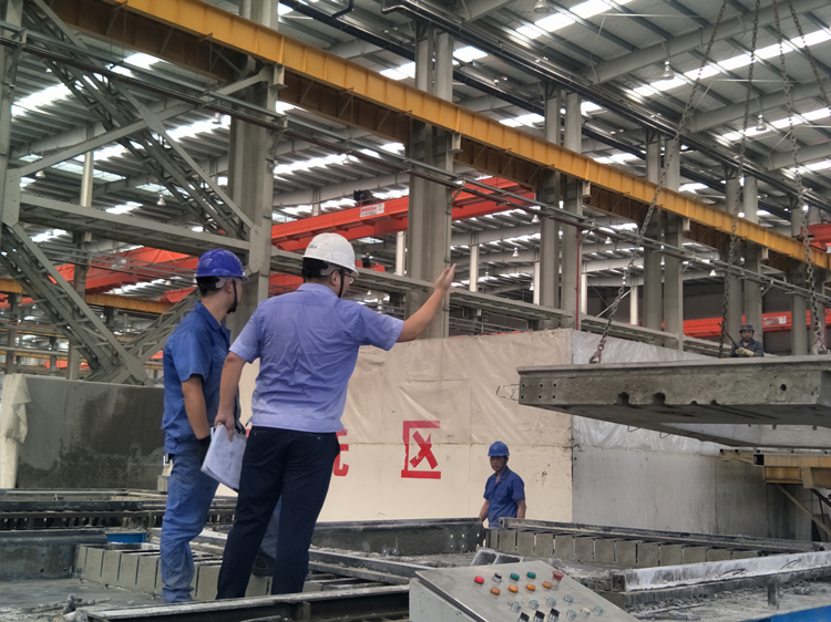 建筑工業(yè)公司生產(chǎn)車間機(jī)器轟鳴、熱浪滾滾,目前主要在為聚賢苑、明發(fā)、沁園供應(yīng)項目構(gòu)件