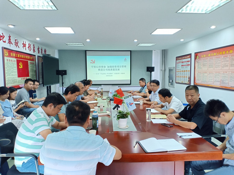 8月20日下午,公司副總經(jīng)理李建成為市政公司和設(shè)備租賃公司廣大黨員干部職工講授《守初心擔(dān)使命,加強(qiáng)投資項(xiàng)目管理,推進(jìn)公司高質(zhì)量發(fā)展》的專(zhuān)題黨課。在市政公司會(huì)議室,來(lái)自市政公司和設(shè)備租賃公司的黨員、入黨積極分子及機(jī)關(guān)管理人員共20余人參加了黨課教育。