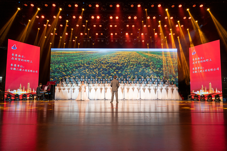 演出過(guò)程中,88名合唱隊(duì)員精神抖擻、全情投入,把對(duì)祖國(guó)、對(duì)企業(yè)的美好祝愿放飛在歌聲里,恢弘大氣的舞臺(tái)效果,訓(xùn)練有素的歌唱技巧,指揮、領(lǐng)唱、伴奏與合唱隊(duì)員和諧配合,為觀眾帶來(lái)了美好的藝術(shù)享受,贏得了臺(tái)下觀眾的喝彩和掌聲,充分展現(xiàn)了安徽三建人昂揚(yáng)向上、團(tuán)結(jié)拼搏的精神風(fēng)貌。