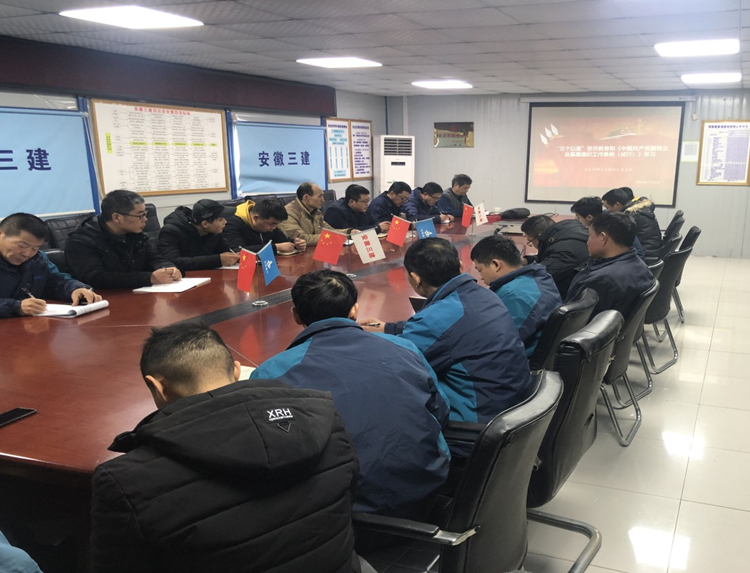 1月11日12日,十二公司滁州東菱項(xiàng)目、肥西優(yōu)步學(xué)府項(xiàng)目、金輝云景花園項(xiàng)目分別組織項(xiàng)目職工深刻學(xué)習(xí)領(lǐng)會《條例》精神