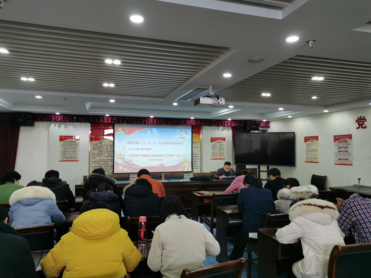 1月6日,基礎(chǔ)公司黨支部在黨員活動室組織全體黨員和職工學(xué)習(xí)《中國共產(chǎn)黨國有企業(yè)基層組織工作條例》