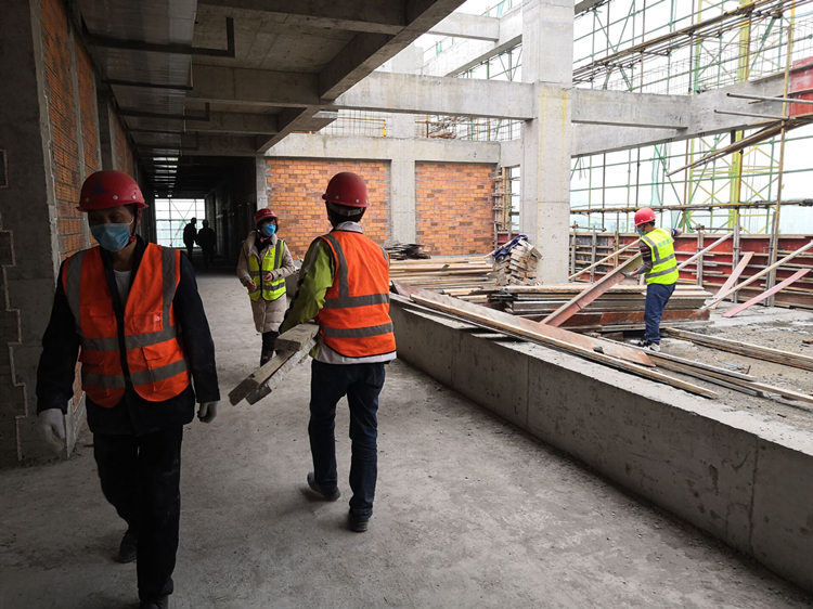 合肥市三中項(xiàng)目工人師傅為復(fù)工準(zhǔn)備材料