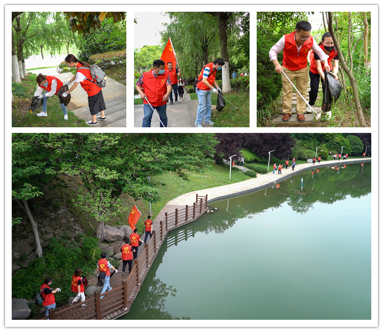 當(dāng)天下午黨員志愿者從合肥市中心圖書館項(xiàng)目出發(fā),在飄揚(yáng)的黨旗引導(dǎo)下,沿著風(fēng)景宜人的天鵝湖公園人行步道,撿拾散落在公園各處的塑料瓶、果皮、紙屑、煙頭等垃圾,讓天鵝湖更干凈美麗。身著鮮紅馬甲黨員志愿者的身影在綠蔭掩映下分外醒目,他們的行為得到了游人的稱贊。