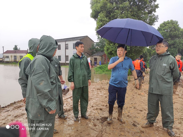 7月19日,公司黨委副書記、總經理何洪春冒雨前往白山鎮(zhèn)金沈村、同春村、九聯(lián)圩村、南淝河東邊步行道攔水埂等抗洪一線指揮部署搶險工作