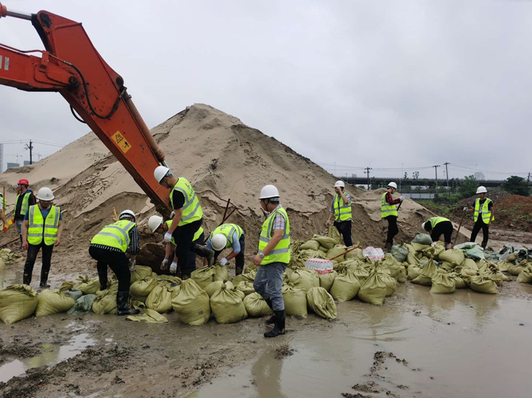安徽三建二公司合巢產業(yè)新城郭塘新村、映湖公租房項目職工配合合巢新城開展防汛搶險工作