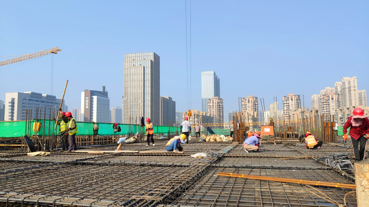 余姚云都會府項目全體職工以搶工競賽迎接偉大祖國生日。