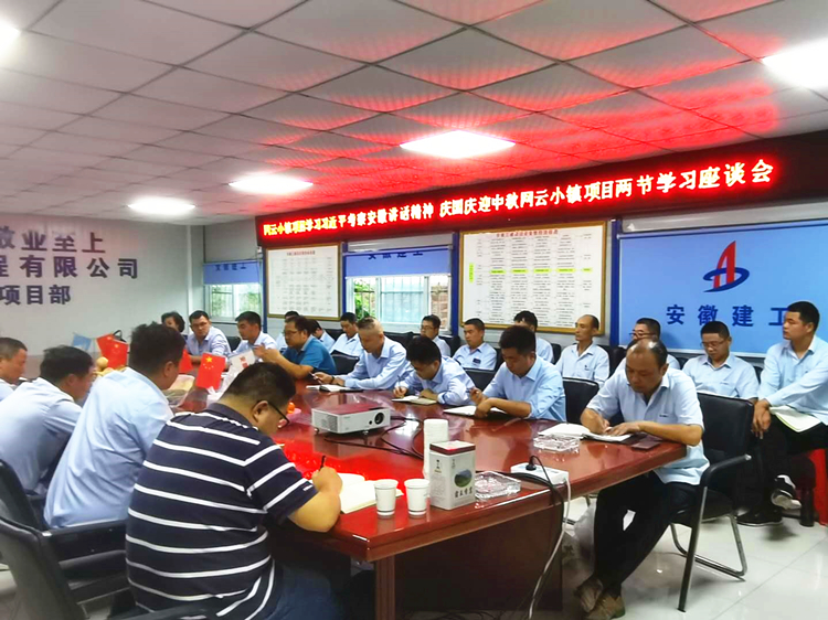 國慶期間九公司班子分赴各地項目慰問堅守一線的項目職工并開展學(xué)習(xí),圖為九公司支部書記侯田漢慰問淮南網(wǎng)云小鎮(zhèn)項目,并帶領(lǐng)項目職工學(xué)習(xí)習(xí)近平考察安徽重要講話精神。