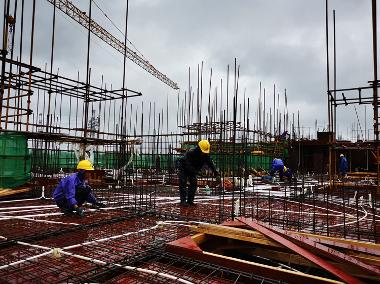 一公司:武漢華發(fā)中央公園、湛江力高悅璟灣項目組織職工深刻學習領會十九屆五中全會精神,以全會深刻內(nèi)涵推動項目高質量建設。圖為湛江力高悅璟灣項目鋼筋班組冒雨捆扎鋼筋。