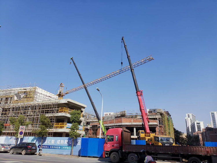 設備租賃公司:組織項目黨員集體學習十九屆五中全會公報內(nèi)容,學習“十四五”發(fā)展的指導思想、遵循原則及目標,號召廣大職工大干四季度、沖刺全年目標。在全會精神激勵下廣大設備職工鉚足干勁、不畏辛苦,各班組人員分赴阜陽、淮南、安慶、阜南等地進行塔吊電梯的安裝和拆除工作,四季度以來設備累計安拆40臺。圖為拆除安慶置地皖江府項目塔吊現(xiàn)場。