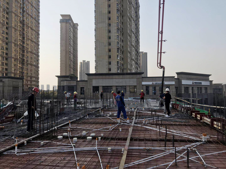 裝飾公司:合肥工業(yè)學校財經(jīng)樓改造項目部組織項目管理人員學習宣傳貫徹黨的十九屆五中全會精神,要求職工全面領會黨的十九屆五中全會的重大意義和精神實質,面對新挑戰(zhàn),繼續(xù)尋求突破、提升施工技術的小革新,提效能、增產(chǎn)值。圖為項目工人正在進行屋頂混凝土澆筑。