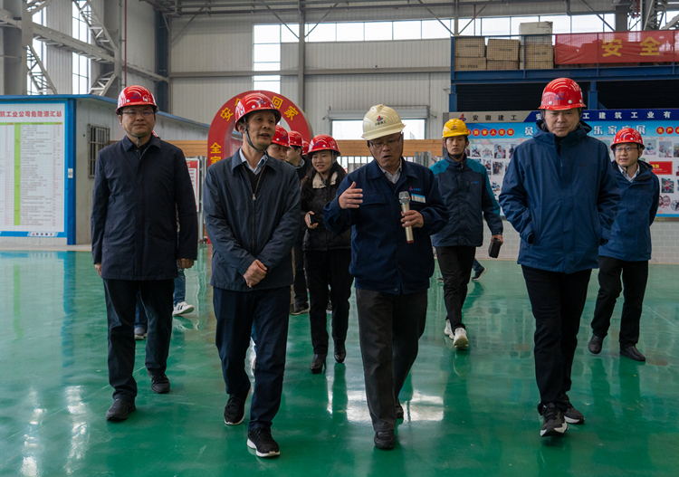 闞立軍一行先后深入建筑工業(yè)公司車間現場、合肥市中心圖書館項目一線察看了解構件生產、項目現場施工情況,詳細聽取了車間、項目生產管理、安全管控等工作情況匯報,并召開了調研座談會。